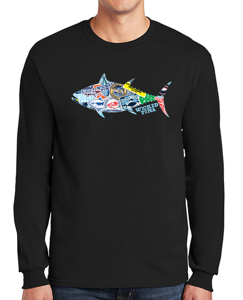 Description The new Tuna Collage long sleeve t-shirts feature a full-color design on the full front on a 100% preshrunk cotton shirt.